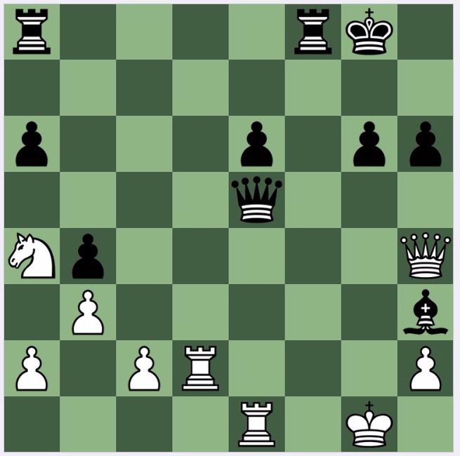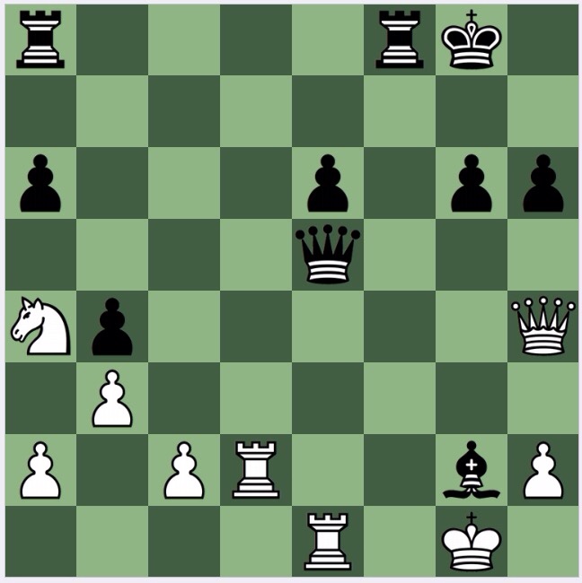 Having been overwhelmed by the beauty of this (and humbled: it is only a blitz game, and Sofia is only quite good at tactics) I decided to blog about this puzzle. So I loaded the position into the Stockfish app on my iPad and was startled to see 1…Bg2 is good (it took the iPad 30secs or so to find it) but only -0.8. What is going on? It prefers 2 Qg3! which somehow I had dismissed in favour of 2 Qh4. Since Judit makes no comment other than giving the 2 Qh4 Bh3 line, presumably 2 Qh4 is the more human move? It would be interesting to know if any of my readers saw 2 Qg3. I saw it, but dismissed it, thinking 2 Qh4 turned the tables on Black.