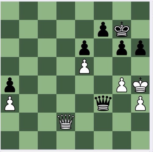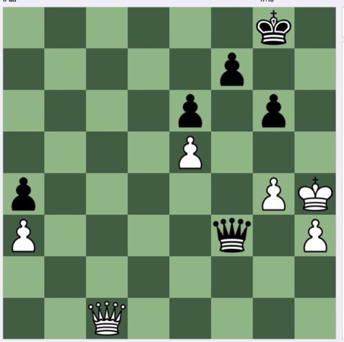 As a child, I might assume it is a draw, but having seen countless Carlsen or Caruana grinds, I now know you have to play on, and see what happens. The best start is to improve the queen, moving it to d4. 2…Qf2+ 3 Kg5[] Qd4: