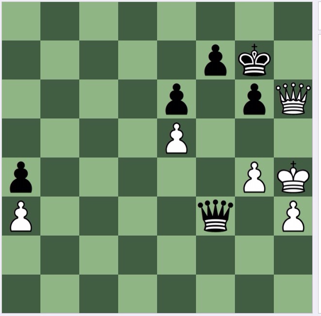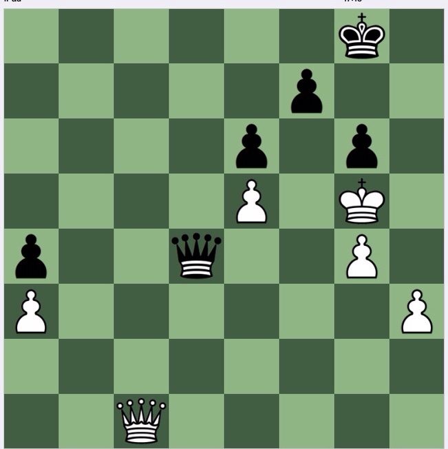 As a child, I might assume it is a draw, but having seen countless Carlsen or Caruana grinds, I now know you have to play on, and see what happens. The best start is to improve the queen, moving it to d4. 2…Qf2+ 3 Kg5[] Qd4: