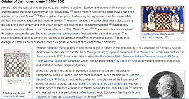 When I was asked, my (incorrect, as it turns out) guess was ‘during the 15th century’, around the time the Queen’s move was changed, changing her from the weakest to the strongest piece on the board.