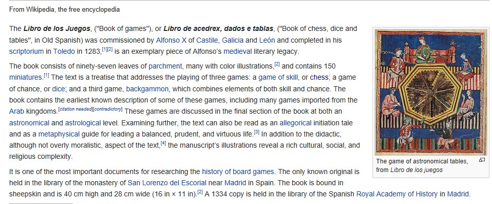 However, the coloured chess board goes back at least a further two hundred years. The Libro de los juegos, a key 1283 document about the history of games, shows (II) a black and white board; (II) white in the right hand corner.