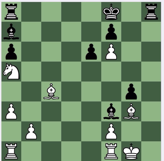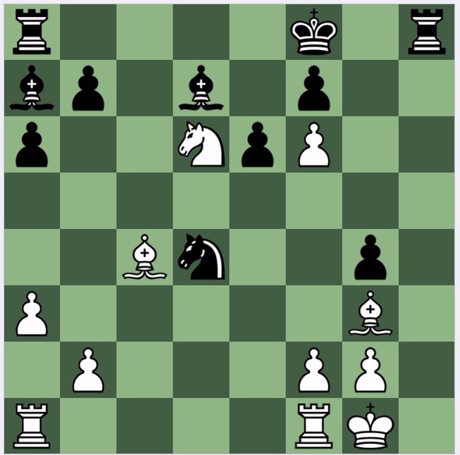 Not too hard, given the open h file and the fact that White's king is in a near net. 1…Bc6 (examine all biffs) wins the knight since if it moves, say 2 Na5, then 2….Nf3+ 3 gf[] Bf3 and mate by Rh1 follows.