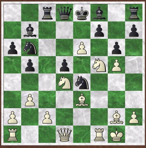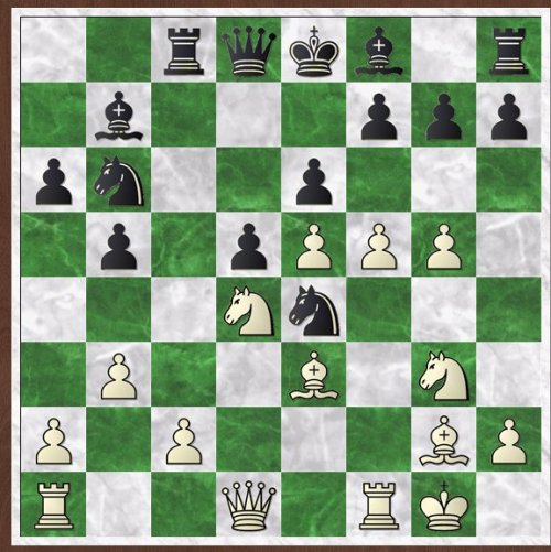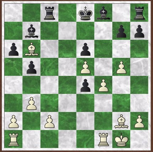 Teschner's puzzle book gives hints or comments which, due to the layout of the book, are impossible not to read. Here, the comment is 'White captures a pawn and weakens his opponent's position decisively'.