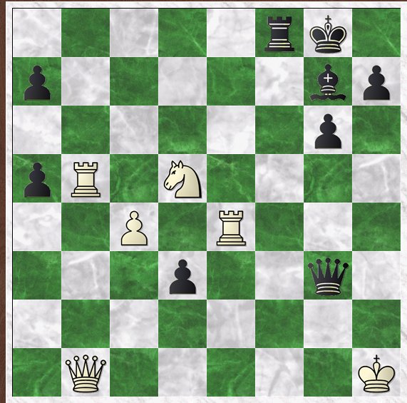 The answer to the question, is it merely a draw?, is clearly ‘no’, given who the two players are. But how? By comparison with the last two days’ puzzles, this one was tough, and took me a while to solve. Eventually I saw the ‘trick’, the ‘idea’, and most of the variations.