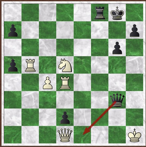 This has the twin idea of removing the coordination between white’s Qb1 and Re4 (which is now a LPDO) and threatening to push on and promote the pawn, or cause mischief with it.