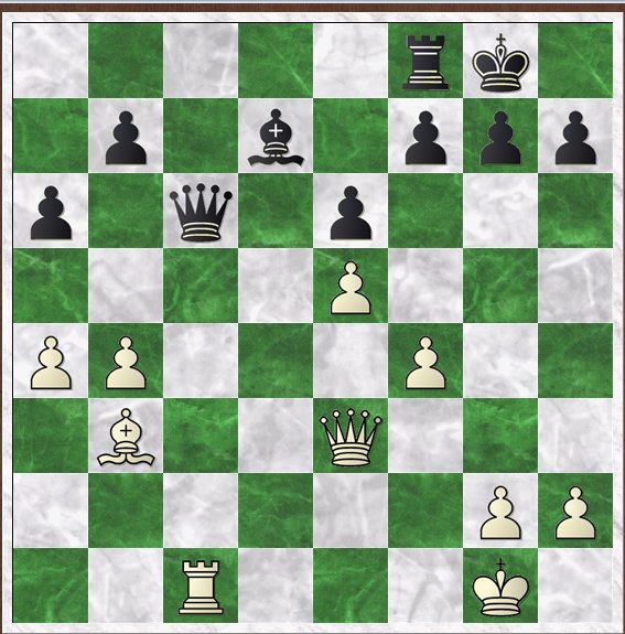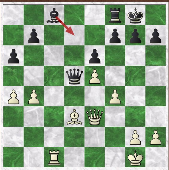 As Purdy exhorts, examine all pins, nets and ties. Here, the Black queen is in a net, and it is not too hard, after first rejecting 1 Be4, to find 1 Bc4! Qc6[] 2 Bb3 and the Queen is trapped.