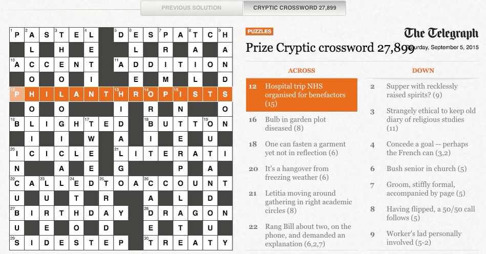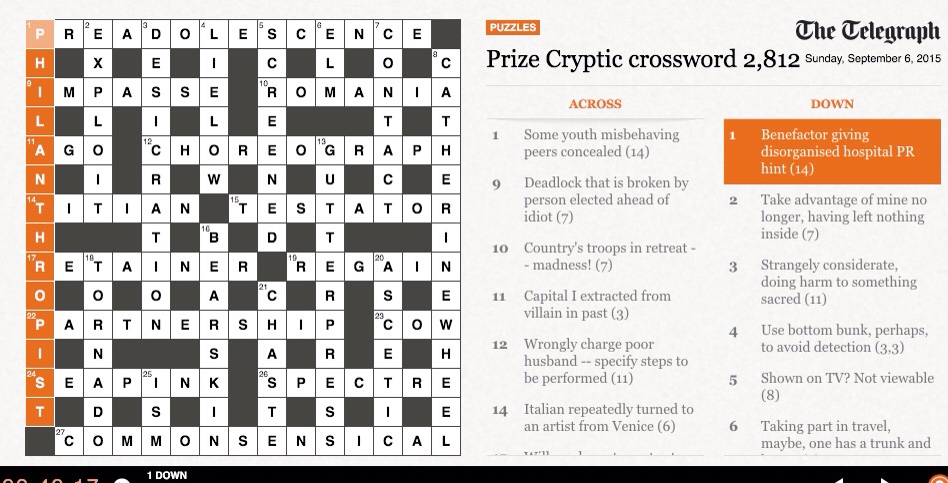 I have been doing the Saturday and Sunday Telegraph crosswords for fifteen years; or, thirty five years, with a twenty year break.