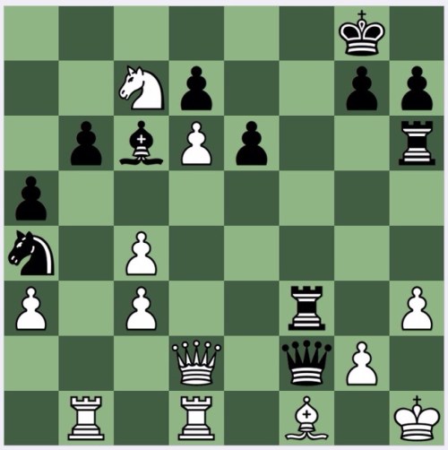 Because I couldn't see 1…Rh3+! to a successful, conclusion, I instead turned to 1…Rf3!, discussed below, but Stockfish of course finds 4…Nc3! which is cute, especially since a subsequent N*d1 defends the Qf2. Black wins. So 1…Rh3+ does indeed win by force. In the answers in Teschner's book, they too don't see 4…Nc3!, saying instead that 'in reality, Black would be in difficulties'. Not in the engine age.