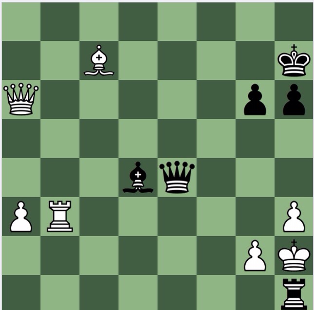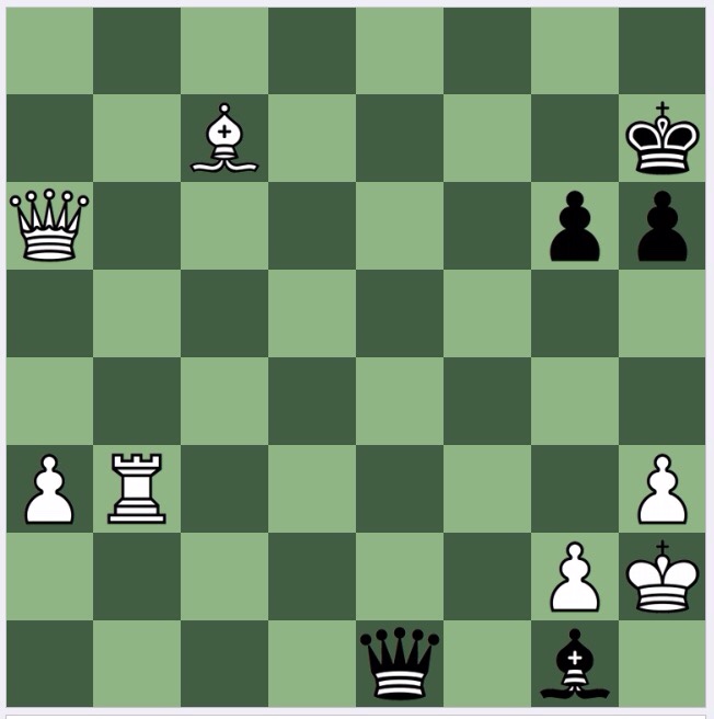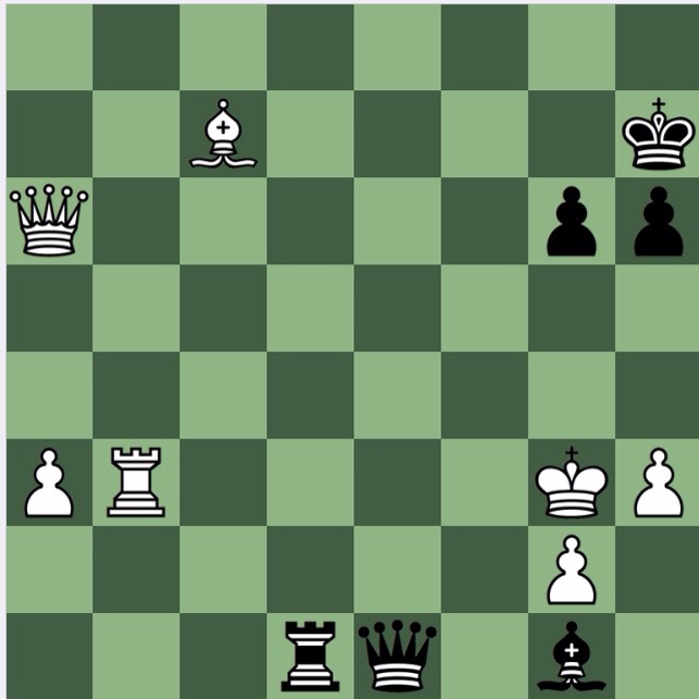 White can though spoil the fun, playing 2 Kg3, when Black is winning (2…h5) but not with particular force. The reason I say the puzzle is only easy on one level is because my engine tells me that 1…Bg1+! is forced mate in six: 2 Kg3 Qe1+ mates, apparently- and playing through a few lines confirms this, though to me it isn't calculable, and I would fear the white king slipping away.
