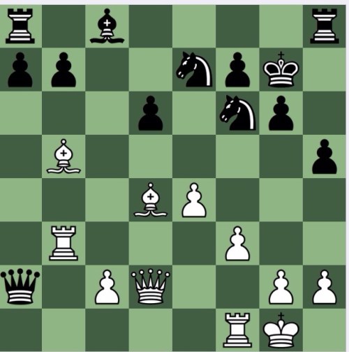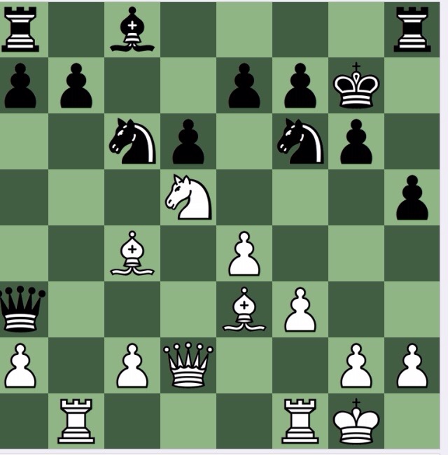 Several moves win, with my engine preferring 1 Nf6 and/or 1 Bb5, to the line I chose, the flashier 1 Ne7! I think Stockfish chose the others because after 1 Ne7, 1…Ne5 Black can grovel on, though the engine assesses the position as +2.5; though my main line was a queen entrapment, 1…Ne7. 2 Rb3 Qa4 3 Bb5 Qa2[] 4 Bd4, with the double threat of disaster on f6 and Ra1.