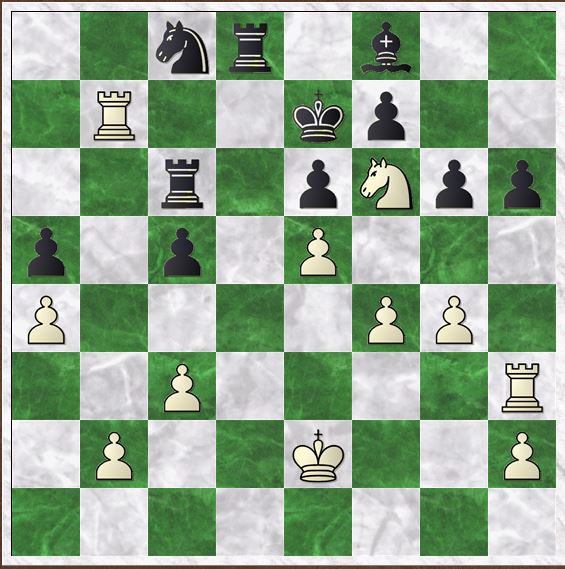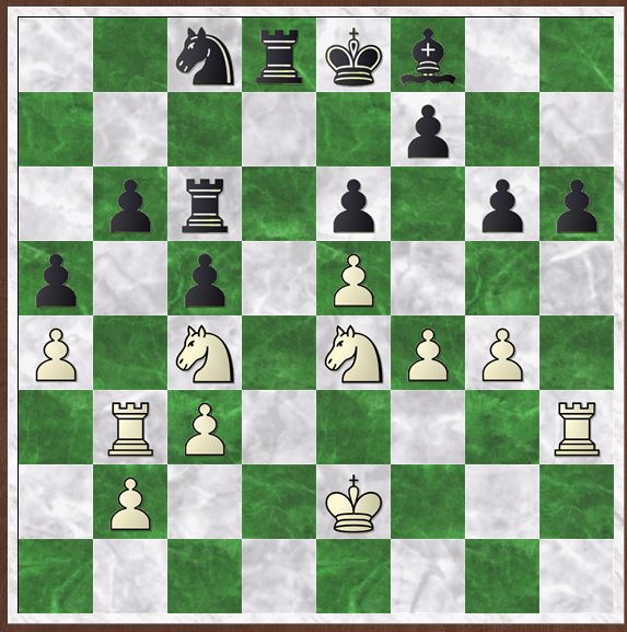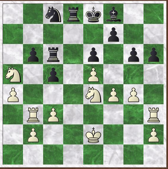 Finding that nothing ‘clicked’ after 1 Nf6+, my first thoughts were to exploit Black’s near zugzwang, improve the rooks, and then ‘do something’. But I couldn’t see what to do here either, until, back to ever reliable Examine All Biffs, I saw 1 Na5! and its point.