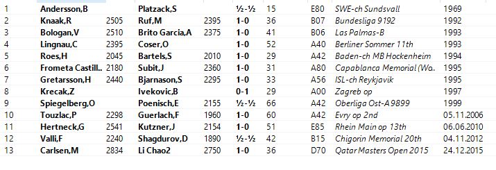 A few seconds later (few, because I had to do the search in both Megabase 2012, my latest version, and TWIC, and then de-dupe) I had the list:
