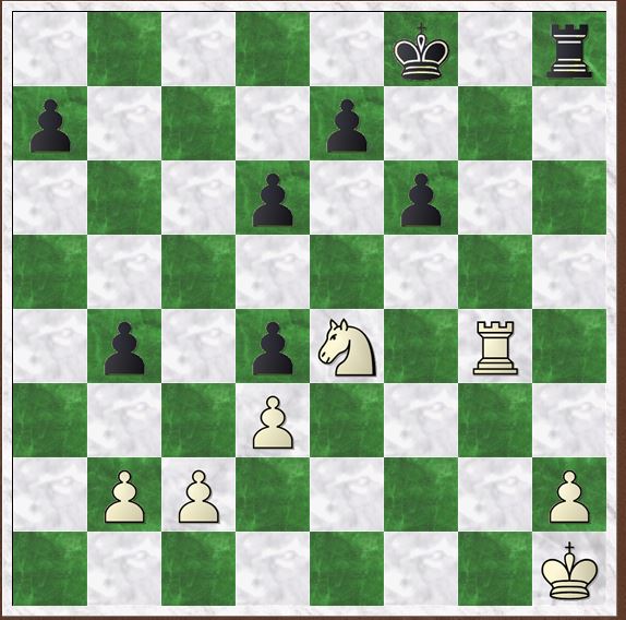In the game, Black played 1…Nh2 and resigned after 2 Nh7+.