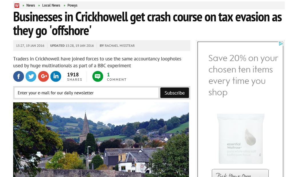 Google is in the news at present for its tax deal struck with HMRC. So, yet again, there is a spike of media coverage about tax avoidance; some well reasoned, some inane, some conflating avoidance and evasion…nothing particularly new. I should though say that I thought BBC2’s recent programme ‘The Town That Took on the Taxman’ about Crickhowell was a very good example of its genre and worth watching whilst still available on iPlayer.