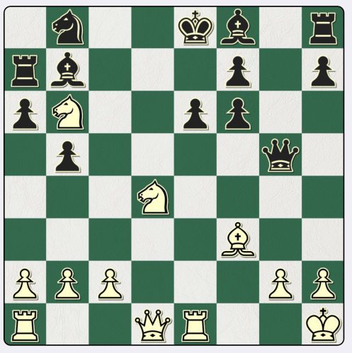 1n2kb1r/rb3p1p/pN2pp2/1p4q1/3N4/5B2/PPP3PP/R2QR2K w k – 0 1