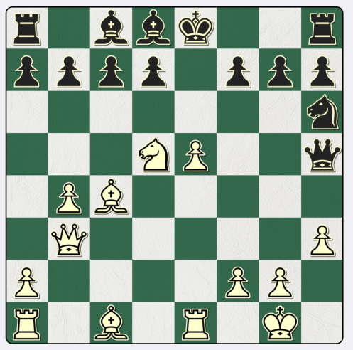 r1bbk2r/pppp1ppp/7n/3NP2q/1PB5/1Q5P/P4PP1/R1B1R1K1 w kq – 0 1