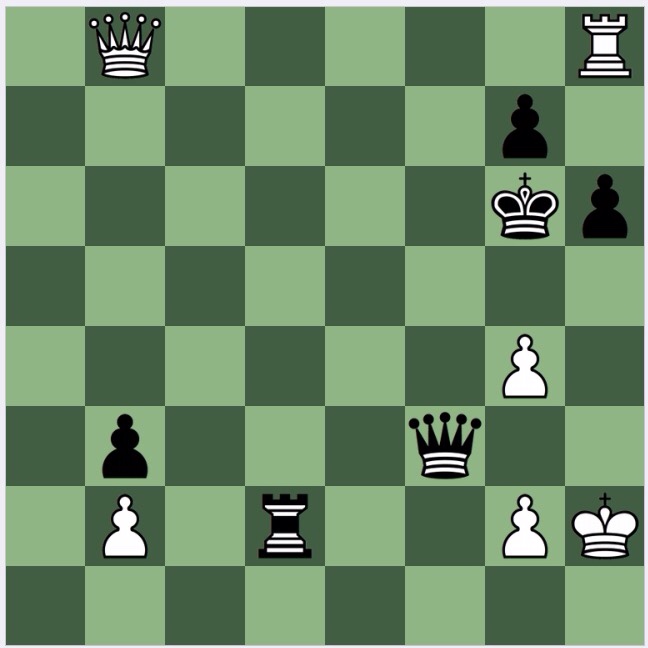 1…Kh6 2 Qh8+ Kg6[] 3 Qh5+ Kf6 4 g5+ discovering an attack on the LPDO Qf3, 1-0;