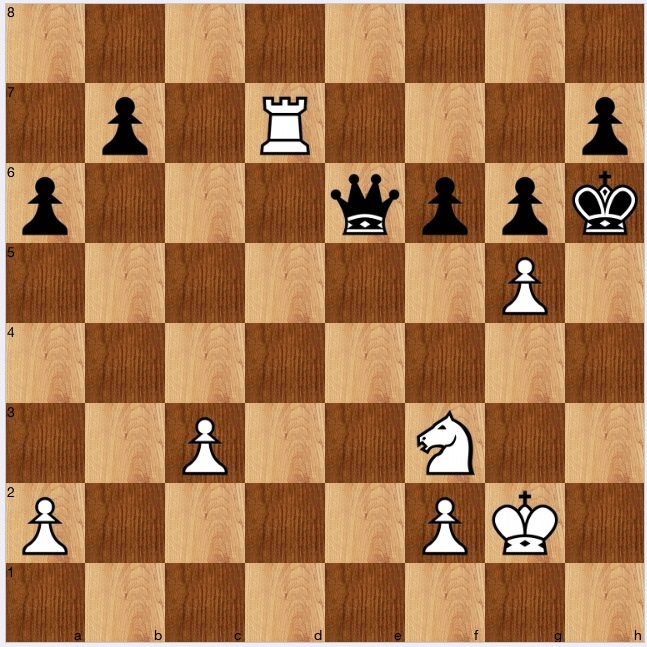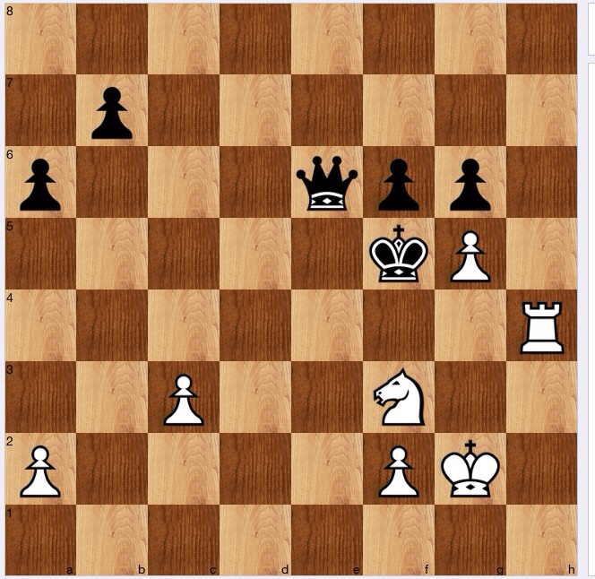 Here, my analysis ended, appraising the situation as clearly winning, and I think that is right. I would always play 5 Re1 here, but for some reason, which I can't fathom, Stockfish strongly prefers 5. Qg6+ first! suggesting that 5…Ke5 6 Re1 is a far improved version as compared with 5 Re1. Personally, I don't see it (and if readers can explain why, perhaps they would like to comment).