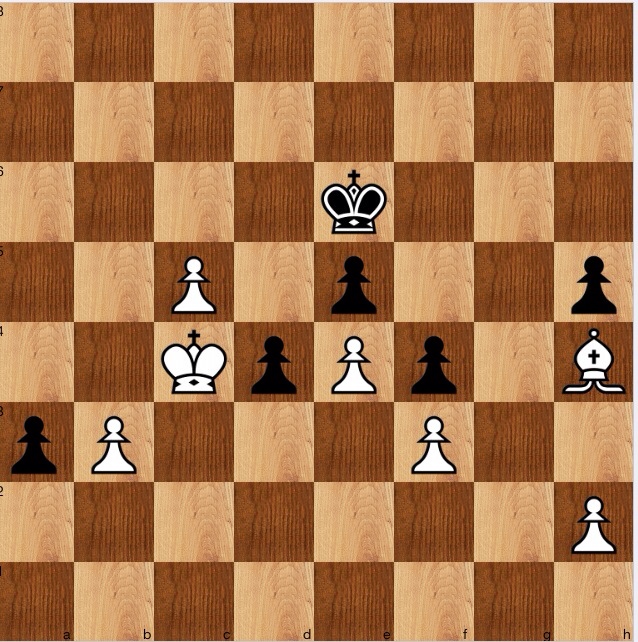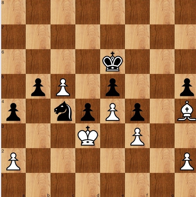 Having 'felt' the solution, I did though skip round to the more prosaic plan of Ke6-d7-c6, aiming to capture on c5, but readily saw that Bh4-e1-b4 shores everything up; and there didn't seem any point of trying to hit the h2 pawn, which can always move forwarded if biffed by Nc4-e3-f1. So, back to calculation, and 1…b4! 2 Kc2 d3+! or 2 Kc4 b3! 3 ab a3! and a try is scored-sorry, the pawn promotes.
