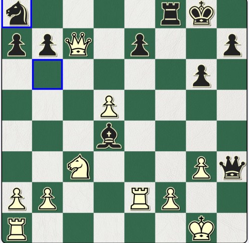 2…Na8! deflects the Queen so that it is no longer able to defend the Pg3: 0-1.